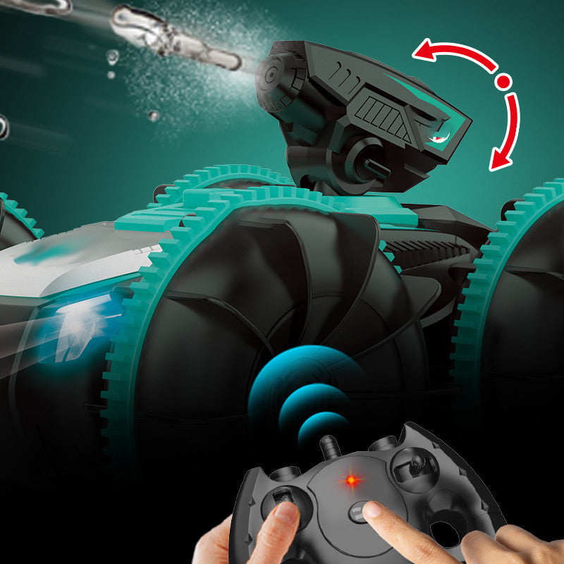360-DEGREE ROTATION: This remote control car features a high-speed motor and 360-degree rotation for impressive stunts. Designed to work seamlessly on land and water, it offers unmatched versatility across multiple terrains for endless fun.