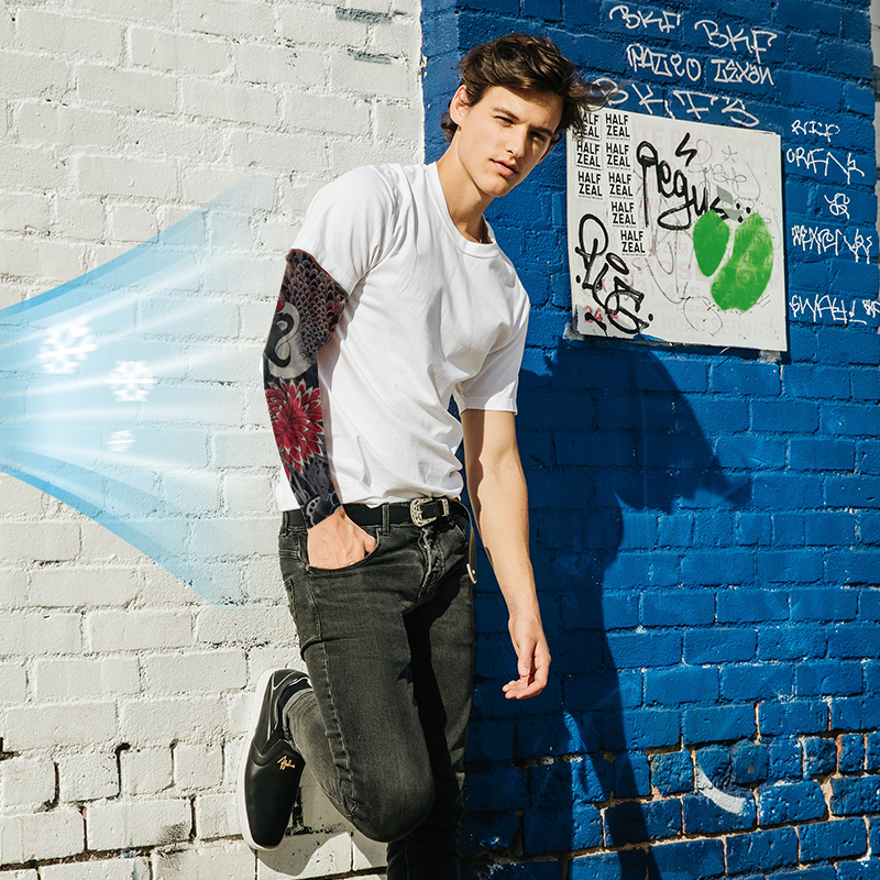 BREATHABLE SECOND-SKIN COMFORTĀ ā Made of stretchy nylon that cools on contact and moves with you. The full elasticity fits most arms snugly without squeezing, while moisture-wicking fabric prevents sweat buildup.