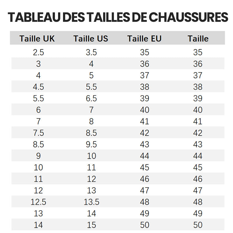 Tips: This size is a standard UK size. You can choose the size you usually wear. If your feet are wide or your instep is high, you can choose a larger size.